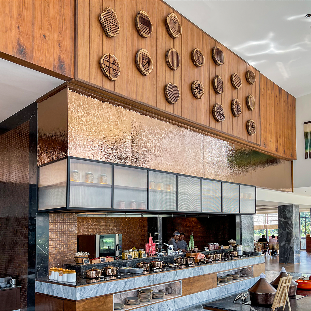 Our bespoke hospitality portfolio includes projects such as Hyatt Regency, Dehradun, Marasa Sarovar, Tirupati, and Forefathers Restaurant, Hyderabad, each thoughtfully designed to respond to its setting, audience, and story.