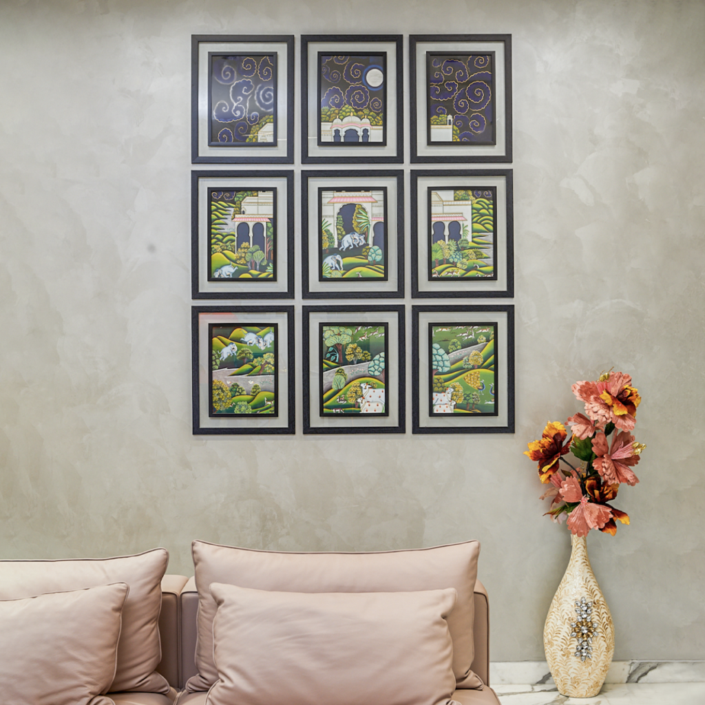 We often reserve art for “destination walls”, the space above the sofa, the dining area, or a large backdrop. Yet, narrow passages, stairwells, entries, or even overlooked corners are perfect spots for art. A cluster of small framed patachitra, a set of miniature paintings, or travel-collected craft pieces can transform these areas into intimate storytelling pockets.